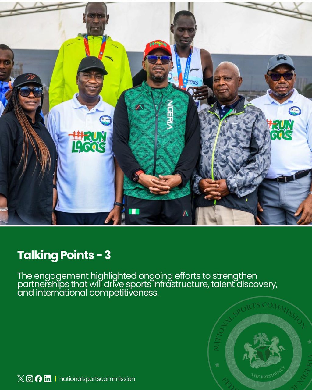 Special appreciation is extended to the Deputy Governor of Lagos State, Femi Hamzat; the Chairman of the National Sports Commission, Shehu Dikko; the Director-General, Bukola Olopade, Senior Special Assistant to the President on Grassroots Sports Development, Adeboye Adeyinka Anthony; the Chairman of the Lagos State Sports Commission, and the many distinguished dignitaries who honoured the event with their presence. It is my sincere hope that the remarkable standard of excellence demonstrated by the Managing Director of Nilayo Sports Management Limited, Yetunde Olopade, has inspired renewed commitment to delivering world-class sporting experiences in Nigeria.